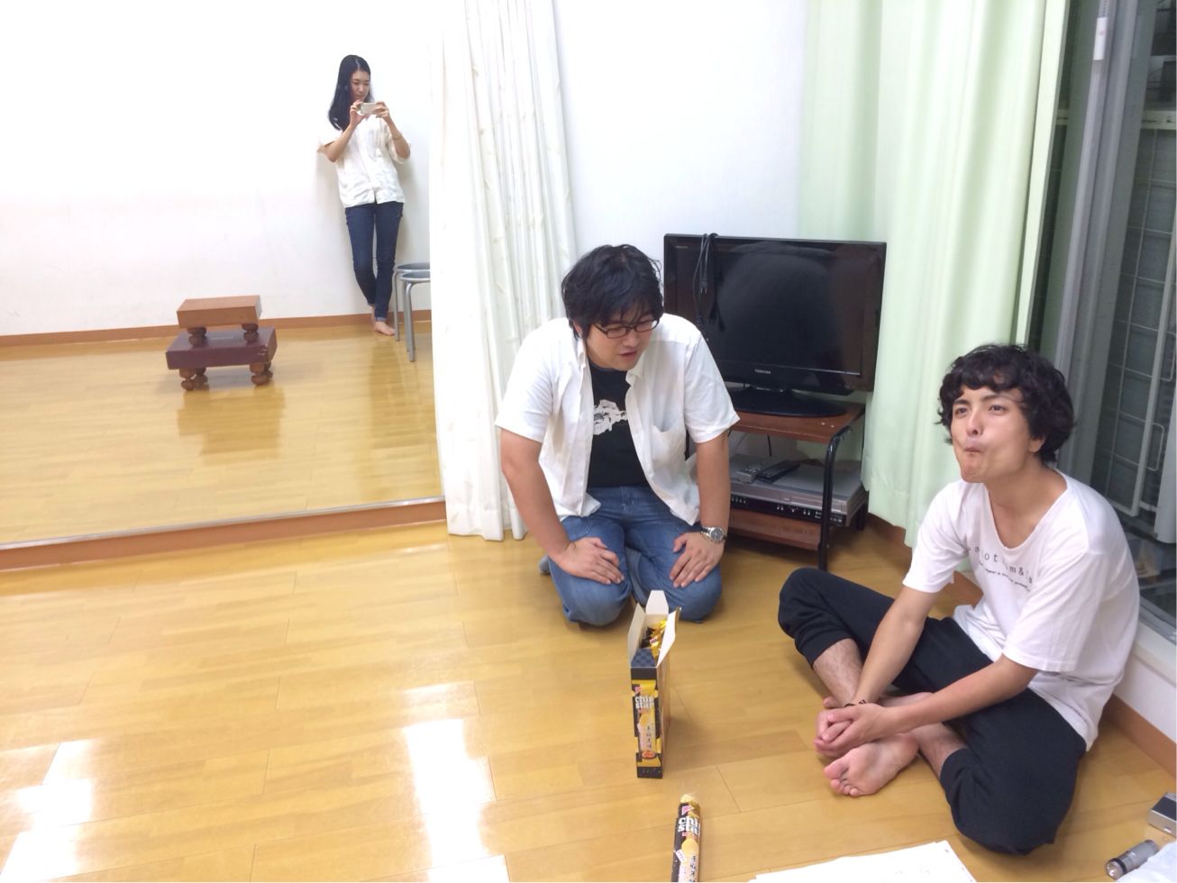 写真は昨日の稽古場に、不幸の星で軍人役を熱演してくれた田山夏輝くんが、なんと名古屋から!遊びに来てくれました。